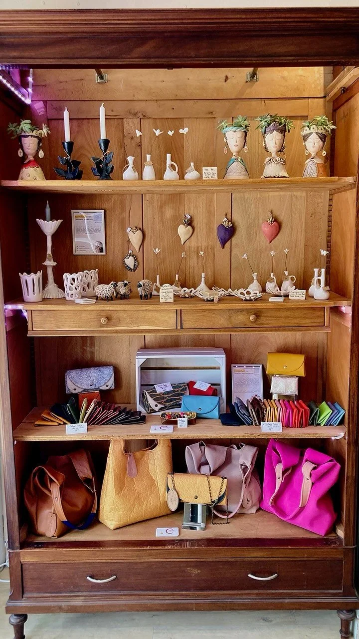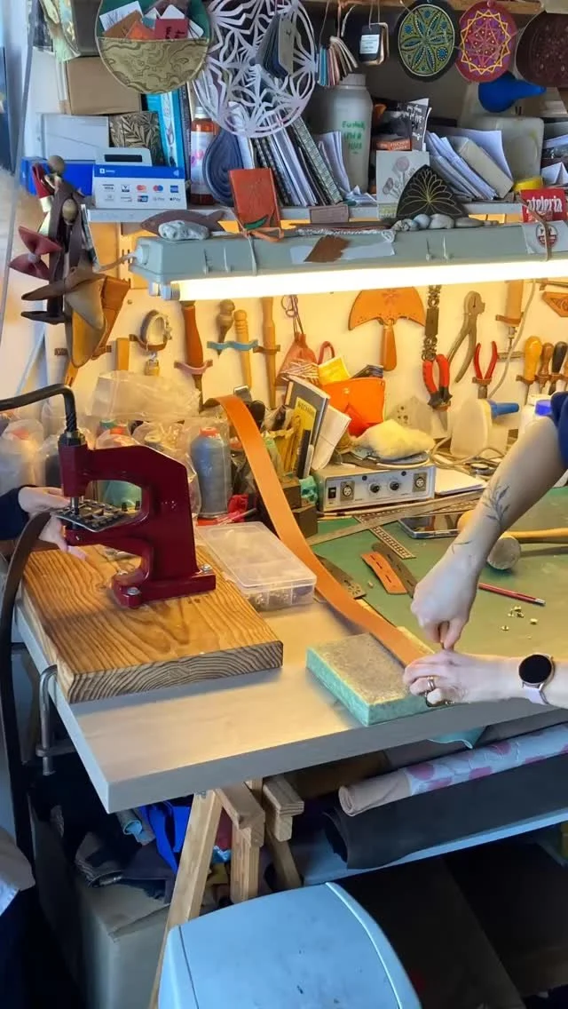 Méticuleuse et passionnée, j’aime travailler de manière traditionnelle, confectionnant une variété de produits tels que des sacs, des cabas, des pochettes, des étuis, des portefeuilles, des porte-cartes, des porte-clés, des ceintures, et même des cartes postales !
